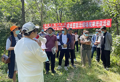 進(jìn)入夏季,為有效提升園林植物的病蟲害管理,確保植物夏季景觀效果,此次活動對夏季多發(fā)病蟲害,包括蚜蟲、蚧蟲、美國白蛾、紅蜘蛛、網(wǎng)蝽、天牛、白粉病、腐爛病等危害狀況、發(fā)生規(guī)律以及最佳防治時期和防治手段進(jìn)行了重點講解。隨后,現(xiàn)場管護(hù)人員結(jié)合工作實際,就病蟲害防治過程中遇到的問題與王順峰老師進(jìn)行了深入探討。最后,對化學(xué)防治松樹蚜蟲、大葉黃楊白粉病等病蟲害,從農(nóng)藥的選擇、稀釋、施用方式等方面進(jìn)行了講解與實操。