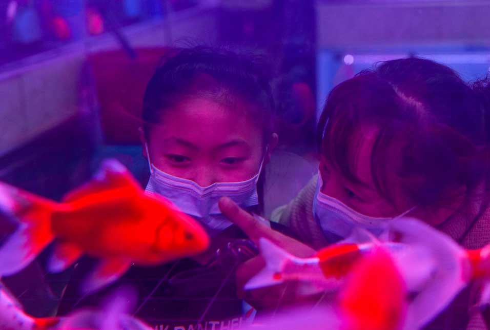 市民在河北省秦皇島市海港區(qū)洋洋花卉市場選購觀賞魚。