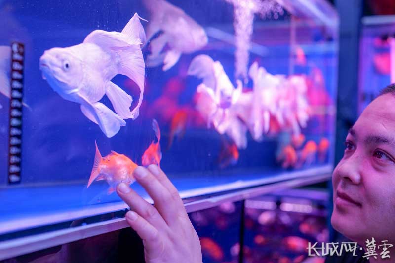洋洋花卉市場帶有“?!弊值挠^賞魚。郭楠 攝