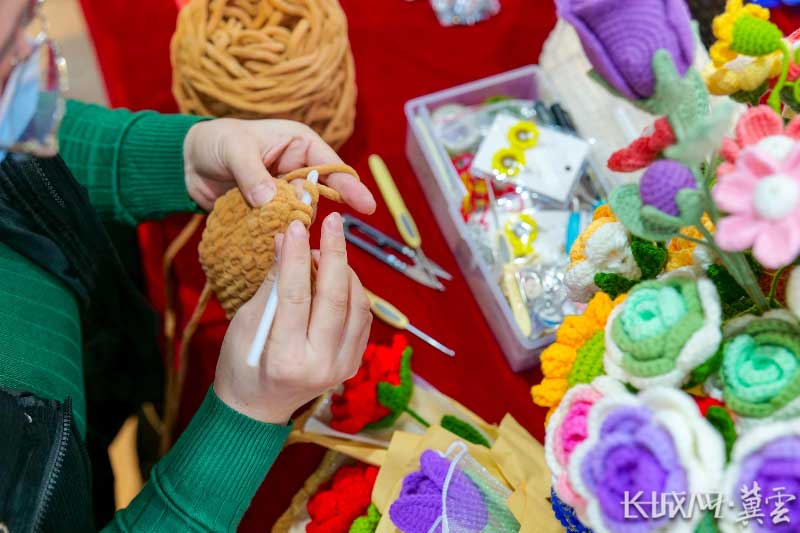 在洋洋花卉市場,店主正在手工編織花束。郭楠 攝