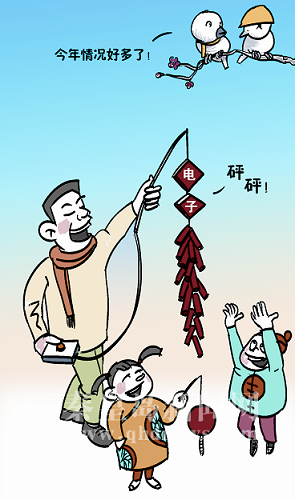 “你這么愛放炮的人都不買炮了,放炮的當(dāng)然少了?!睆埾壬膼廴藯钆侩m然是在開玩笑,但夫妻倆的確都能體會到,往年除夕夜的炮聲幾乎能和大年初一早晨的炮聲連起來,讓人根本睡不好覺,可今年炮聲的持續(xù)時間變短了,聲音也變小了。