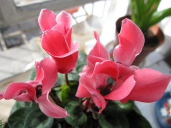仙客來 又稱為兔子花,色彩明亮的花單朵著生在長長的花梗上,花瓣蕾期先端下垂,花開時(shí)上翻,花色豐富。