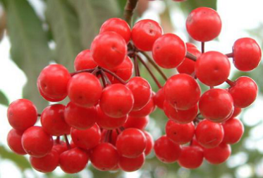 朱砂根 又稱大羅傘、圓葉紫金牛。葉革質(zhì),有光澤而密集,在圣誕、元旦、春節(jié)期間結(jié)出光亮而鮮紅的果實(shí),紅色球形漿果酷似熟透了的紅櫻桃,結(jié)于全株下半部環(huán)狀枝葉間,有較高的觀賞價(jià)值。象征著祥和富貴、安康吉祥。