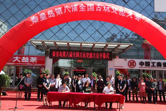 五月的秦皇島,處處充滿著清新與芳香,五月的港城大地迎來了又一次古玩文化的盛會(huì)。2017年5月13日上午10:00時(shí),由秦皇島市文廣新局、秦皇島市古玩收藏商會(huì) 、秦皇島洋洋集團(tuán)主辦。由秦皇島市美術(shù)家協(xié)會(huì)、秦皇島市書法家協(xié)會(huì)、秦皇島市女美術(shù)家協(xié)會(huì)、秦皇島市紅色紀(jì)念品研究交流協(xié)會(huì)、秦皇島市觀賞石協(xié)會(huì)、秦皇島市洋洋古玩城有限公司、秦皇島市洋洋花卉有限公司共同協(xié)辦的秦皇島第八屆全國(guó)古玩交流大會(huì)暨秦皇島市古玩收藏商會(huì)締結(jié)友好聯(lián)盟簽約儀式在新洋洋花卉拉看了序幕,大會(huì)設(shè)置2個(gè)展廳,4個(gè)展區(qū),分別是地?cái)偨涣鲄^(qū)、精品展示區(qū)、女畫家作品賞析區(qū)、現(xiàn)場(chǎng)名家書畫展示區(qū),參加展會(huì)的由來自全國(guó)52個(gè)城市的古玩經(jīng)營(yíng)者325戶,吸引我市及周邊城市古玩愛好者數(shù)萬人。本次活動(dòng)以展會(huì)為媒介,成功要求了國(guó)內(nèi)10個(gè)城市的行業(yè)商會(huì)、協(xié)會(huì)到場(chǎng),并在全國(guó)各地古玩愛好者及我市文廣新局、文聯(lián)、工商業(yè)聯(lián)、美協(xié)領(lǐng)導(dǎo)的見證下,秦皇島市古玩收藏商會(huì)作為發(fā)起方分別與北京市古玩業(yè)協(xié)會(huì)、天津市收藏家協(xié)會(huì)、哈爾濱收藏協(xié)會(huì)、長(zhǎng)春奇石古玩商會(huì)、保定古玩業(yè)商會(huì)、唐山市收藏愛好者協(xié)會(huì)、內(nèi)蒙古赤峰市古玩業(yè)商會(huì)、沈陽市古玩業(yè)商會(huì)、錦州古玩業(yè)商會(huì)、阜新古玩業(yè)商會(huì)十個(gè)城市簽訂友好聯(lián)盟締結(jié)協(xié)議,古玩行業(yè)友好聯(lián)盟的成功締結(jié)不僅在行業(yè)內(nèi)建立了相互互信任、相互學(xué)習(xí)和交流的互動(dòng)機(jī)制,更是實(shí)現(xiàn)了“信息互遞、資源共享”,我們將牽手各地區(qū)商(協(xié)會(huì))緊密合作、攜手并進(jìn)、為推進(jìn)古玩行業(yè)發(fā)展楊帆助力。