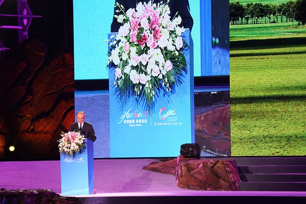 2017年9月17日—19日秦皇島舉辦第二屆河北旅發(fā)大會,大會組委會隆重邀請秦皇島英皇國際馬術(shù)俱樂部進(jìn)行馬術(shù)現(xiàn)場表演,體現(xiàn)秦皇島馬術(shù)文化精神與風(fēng)采。在開幕式上,河北省省長許勤發(fā)表重要講話,秦皇島市市委書記孟祥偉發(fā)表致辭,以“秦皇山海·康養(yǎng)福地”為品牌,投資300多億元興建了山海旅游鐵路、漁島溫泉度假、金士紅酒莊園等四季皆宜、產(chǎn)業(yè)融合、品質(zhì)高端的旅游項目,帶動7縣區(qū)23鄉(xiāng)鎮(zhèn)394村2000平方公里的旅游環(huán)境發(fā)生根本改變,全域旅游條件已經(jīng)成熟。