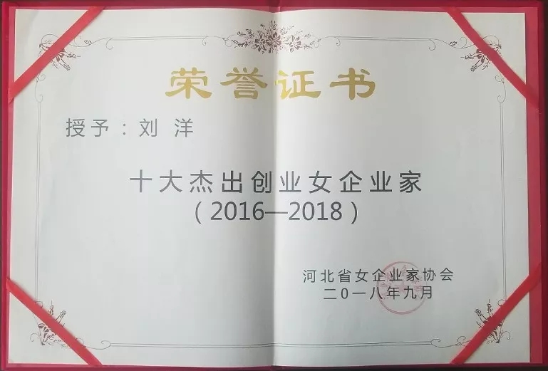 同時, 秦皇島市女企業(yè)家協(xié)會會長、河北英皇集團、洋洋集團董事局主席劉洋更是榮獲了2016-2018年度“十大杰出創(chuàng)業(yè)女企業(yè)家”的榮譽稱號。