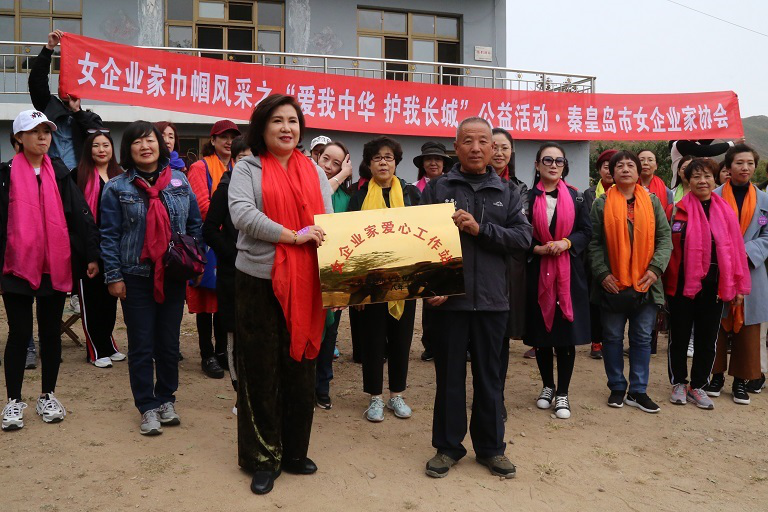秦皇島市女企業(yè)家協(xié)會會長劉洋代表全體姐妹向張鶴珊老師奉獻(xiàn)了女企業(yè)家們的愛心捐贈,希望張老師能夠帶著所有女企業(yè)家的愛和期望更好的守護(hù)好古跡、保護(hù)好長城,為未來保存下更厚重的歷史文化。同時還在此建立了“秦皇島市女企業(yè)家愛心工作站”,并成立了女企業(yè)家保護(hù)長城自愿者工作組,協(xié)會將定期帶領(lǐng)會員到長城沿線開展撿拾垃圾、宣傳長城文化等志愿服務(wù),希望通過愛心工作站能夠吸引更多企業(yè)參加到“愛我中華、護(hù)我長城”的公益活動中,讓大家能夠關(guān)注長城,更深愛長城文化,傳承歷史的厚重,更希望女企業(yè)家協(xié)會289名會員能夠積極帶領(lǐng)企業(yè)更多的參加保護(hù)長城公益活動,為社會承擔(dān)責(zé)任,為保護(hù)歷史文化獻(xiàn)上愛心。