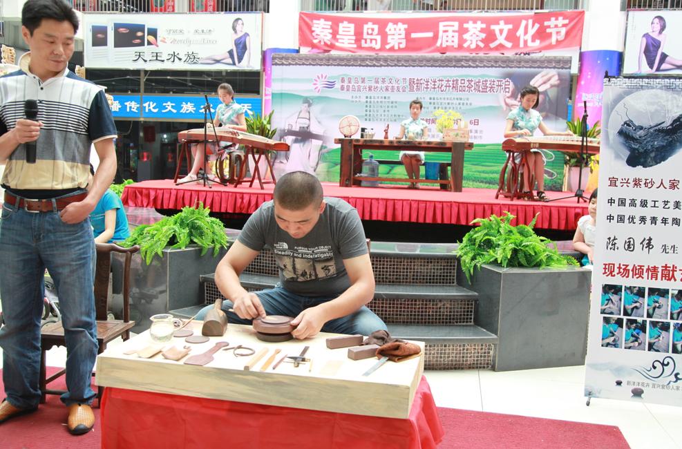7月5日上午9時58分,秦皇島第一屆茶文化節(jié)、秦皇島宜興紫砂人家壺友會暨秦皇島新洋洋花卉精品茶城盛裝開啟儀式在新洋洋花卉一層大廳準(zhǔn)時舉行,來自秦皇島市弦·茶序的茶藝師及古箏演奏家、秦皇島宜興紫砂人家紫砂壺制作大師陳國偉先生攜高徒、秦皇島洋洋花卉購物中心、秦皇島洋洋古玩城、秦皇島電視臺傳媒網(wǎng)、秦皇島日報社新聞網(wǎng)等媒體朋友以及洋洋集團(tuán)總裁劉洋女士攜高管成員出席了此次盛會。