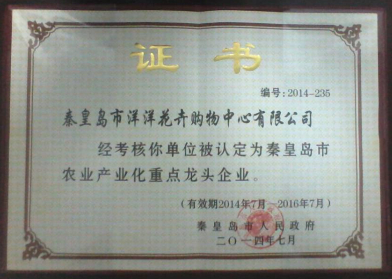 洋洋花卉、購物中心雙雙榮獲秦皇島市農(nóng)業(yè)產(chǎn)業(yè)
