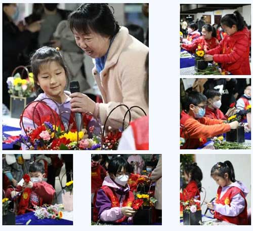 福至心靈,帶著對媽媽滿滿的愛,在花藝?yán)蠋煹闹笇?dǎo)下,一份份精美的插花作品在小記者們一雙雙巧手中誕生,他們充分發(fā)揮著自己的想象力與動手能力,仔細(xì)修剪花材,認(rèn)真搭配顏色,感知層次與花語,將朵朵鮮花變成一件件獨(dú)特的花藝作品,并將帶著祝福的漂亮花籃送給媽媽,講述著心中的愛與感恩。