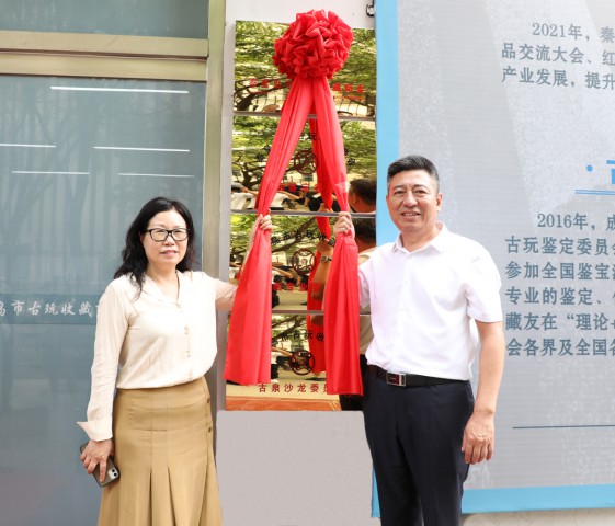 秦皇島市工商聯(lián)主席王秀紅與會長劉海龍為古玩收藏商會新址揭牌