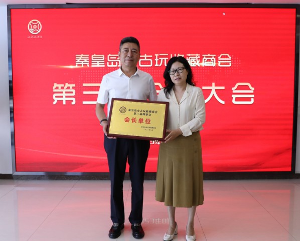 秦皇島市工商聯(lián)主席王秀紅為秦皇島市古玩收藏商會新任會長劉海龍授牌