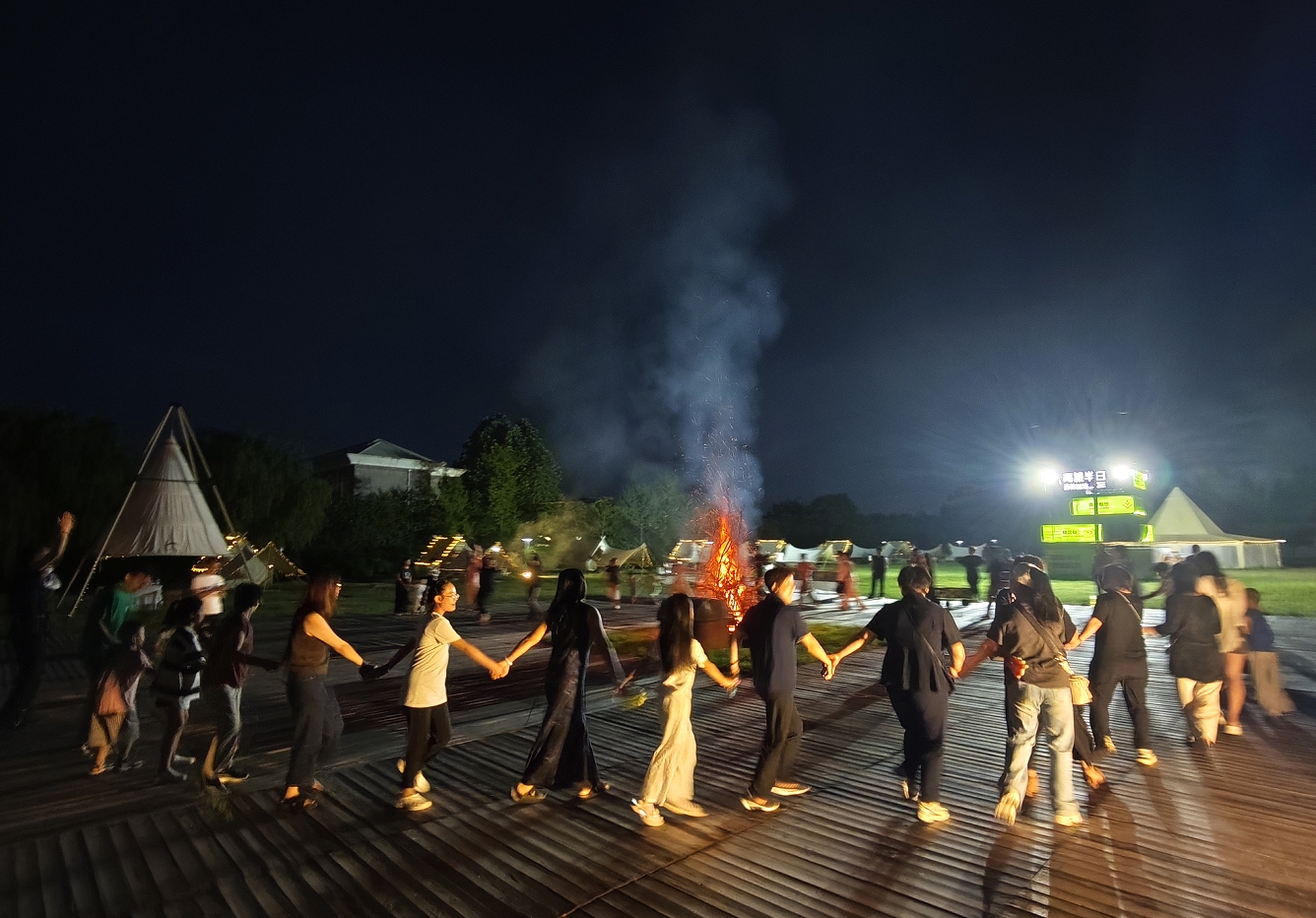 走進離城半日森林營地,就像進入了一片森林氧吧。商家們在這里露營燒烤,打卡拍照。當夜幕降臨時,熱情的篝火熊熊燃起,商家們圍繞火堆載歌載舞,進行游戲比拼,盡情釋放快樂。