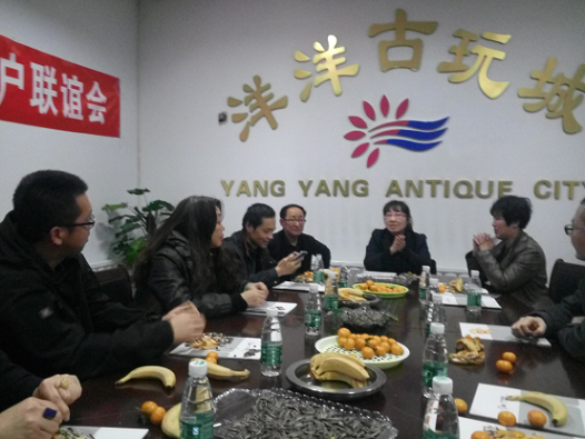 會(huì)上,古玩城經(jīng)理呂宏麗對(duì)古玩城的發(fā)展及規(guī)劃目標(biāo)進(jìn)行了簡(jiǎn)要介紹。并對(duì)一年來(lái)各位商戶對(duì)古玩城各項(xiàng)工作的支持表示感謝。商戶代表對(duì)古玩城管理等方面給予了高度評(píng)價(jià),大家積極發(fā)言,圍繞目前經(jīng)營(yíng)狀況及面臨的困難等問(wèn)題展開(kāi)深入交流,并提出了寶貴的意見(jiàn)和建議。大家表示,將充分利用洋洋古玩城的經(jīng)營(yíng)平臺(tái),積極將古玩行業(yè)發(fā)展壯大。