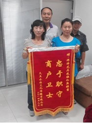 2014年8月25日凌晨02:00,新洋洋花卉監(jiān)控員楊桂敏在與夜保人員趙肅一、張學(xué)斌配合巡查時(shí),通過魚區(qū)監(jiān)控報(bào)警設(shè)備發(fā)現(xiàn)1-B-1“天王水族”魚區(qū)出現(xiàn)了斷電現(xiàn)象,她及時(shí)按照規(guī)程操作第一時(shí)間在對講機(jī)內(nèi)要求夜保人員到達(dá)“天王水族”現(xiàn)場,查看確認(rèn)后立即與“天王水族”負(fù)責(zé)人取得聯(lián)系,使工作人員及時(shí)進(jìn)行了維護(hù),為其避免了重大經(jīng)濟(jì)損失。出于感激授予了錦旗一面,上寫著“忠于職守 商戶衛(wèi)士”的光榮稱號,此行為受到了商場內(nèi)廣大商戶的一致好評,也為所有員工樹立了好榜樣。